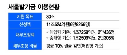아울러 자영업자 한계 차주의 과감한 채무조정을 위해선 1인당 이용한도를 상향하고 담보대출 기준도 완화해야 한다는 지적이 나온다. 현재 담보대출 기준 이용한도는 1인당 10억원으로 법원 개인회생 15억원보다 도리어 낮다. 자영업자 대출의 70% 가량이 담보대출이지만 새출발기금의 채무조정은 신용대출 위주로 이뤄지고 있다.
